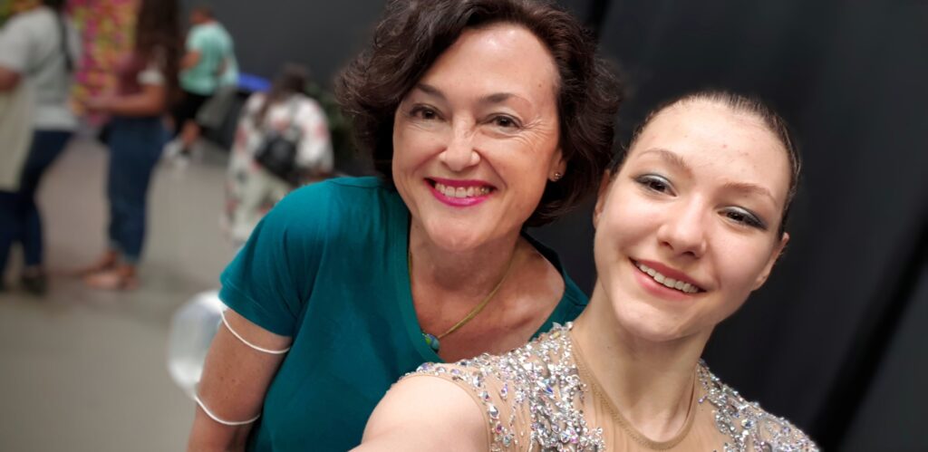 A Lucía la habíamos descubierto también en Marbella en octubre de 2021 Nos deslumbró su actuación en la final de la competición internacional junior, de la que resultó campeona. Por la tarde nos la encontramos junto a la puerta del pabellón, la saludamos, le pedimos hacernos una foto con ella e iniciamos una animada conversación. Elisa le comentó que nunca había visto un giro dorsal tan largo como el suyo, dos vueltas completas, y le dijimos que le veíamos un brillante futuro en la selección, de la que aún no formaba parte. Lucía se mostraba entre escéptica y esperanzada. ¡A ver si me ve actuar la seleccionadora y se fija en mi, nos dijo! Y así fue. El año pasado nos la encontramos en la World Cup de Pamplona. Aunque no participaba ya había viajado con el equipo nacional. Nos dijo que estaba trabajando duro. Le dimos la enhorabuena y le deseamos mucho éxito.