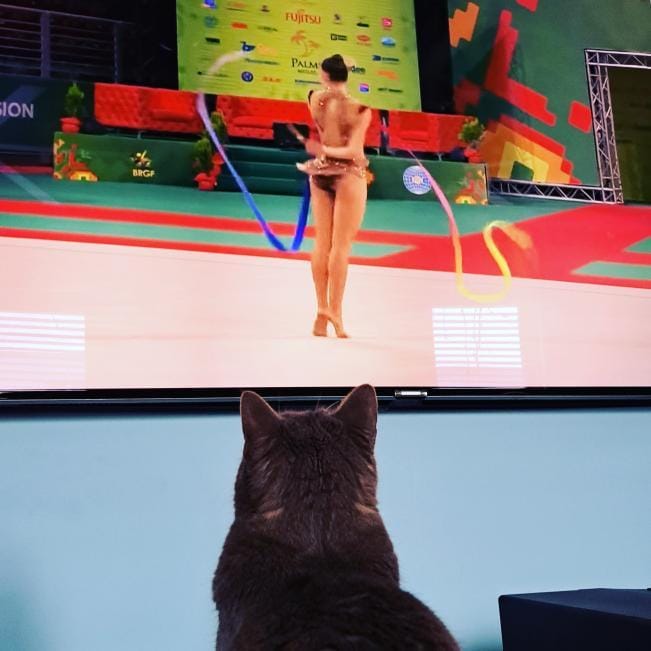 En un momento de la entrevista Mafalda se dirigió expresamente a mí y me preguntó, ¿por qué te gusta la rítmica? Esa pregunta nos la han hecho decenas de veces. Nadie le pregunta a la gente por qué le gusta el fútbol pero si por qué le gusta la rítmica. Parece un gusto raro por el que hubiera que dar explicaciones. Les contesté más o menos, no estoy muy seguro de cómo de bien, que para mí la gimnasia rítmica es algo más que gimnasia, que tiene elementos de ballet, de danza y que transmite muchas emociones, que es un arte.